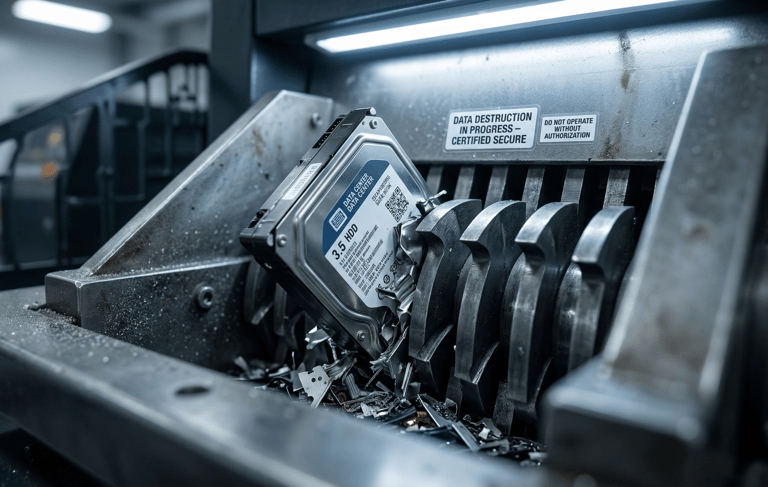 Destrucción Certificada de Datos: Aplicamos el estándar de oro mediante la trituración mecánica (shredding) de discos duros y medios de almacenamiento, haciendo la información absolutamente irrecuperable.