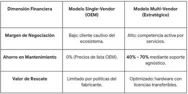 Esta práctica no solo libera flujo de caja para inversiones masivas en IA, sino que garantiza que las aplicaciones estables de back-office sigan funcionando perfectamente en hardware de generaciones anteriores sin los sobrecostos de los contratos escalonados de los OEMs, que suelen incrementar sus precios entre un 10% y 15% anualmente después del tercer año.